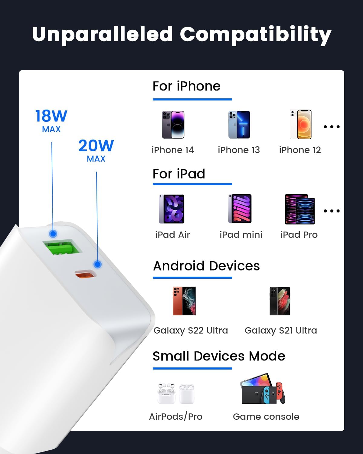 ✅ Safety is our top priority. The PD20W charger features advanced safety mechanisms to protect your devices from overcharging, overheating, and other potential hazards. Charge with confidence, knowing your devices are safe and secure.